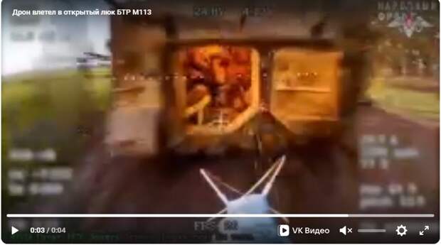 Дрон влетел в открытый люк «покалеченного» M113 американского производства