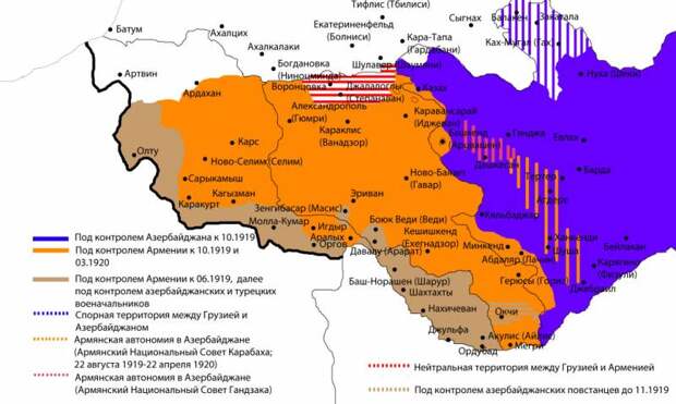 «Новорожденная» Армения тут же сцепилась и с Грузией, и с Азербайджаном, и с Турцией – об этом было рассказано в статье Падение Османской империи.