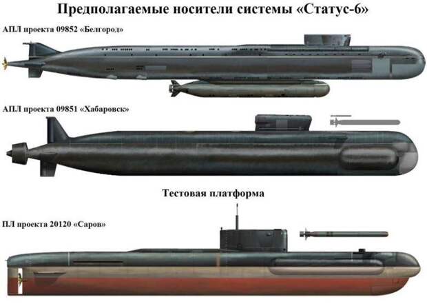 Изучившие с лупой кадры специалисты-милитаристы всей планеты узнали: главным элементом Системы является необитаемый самоходный подводный аппарат, сиречь подводная лодка-дрон с набором спецоборудования. С дальностью хода 10 тысяч километров на трёхзначной скорости (не разглядеть) на глубинах до 1 000 метров. Габариты аппарата остались неизвестными, носителями «Статуса-6» значились АПЛ «Белгород» проекта 09852 и «Хабаровск» проекта 09851. До 2018-го перспективный Комплекс должен завершиться первый этап разработки, до 2025-го пройти все этапы испытаний. Уложились в срок, моё почтение инженерам/корабелам.