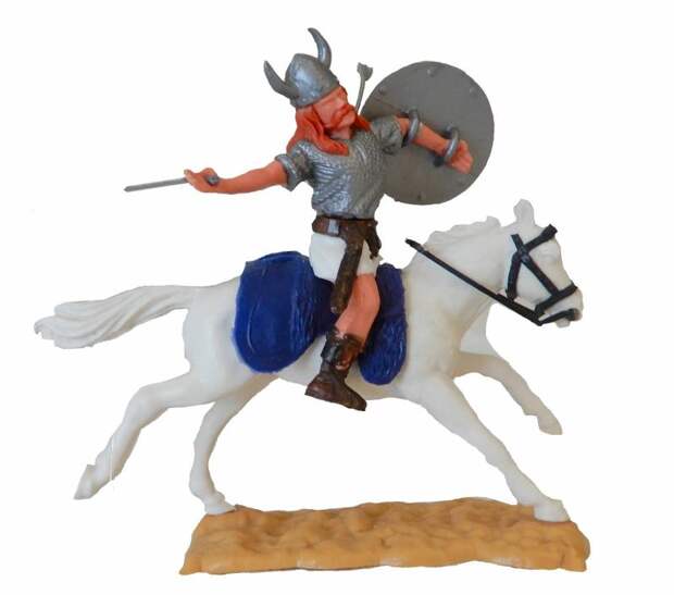 Современная аргентинская компания «DSG», которая приобрела лицензию на производство солдатиков у знаменитой английской Britains, выпускает оригинальных викингов, но… с рогами на шлемах.