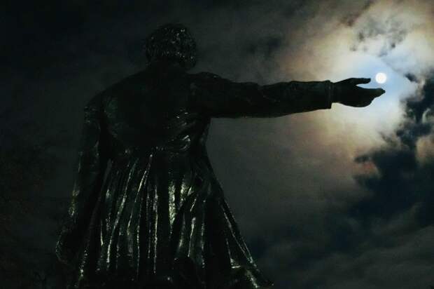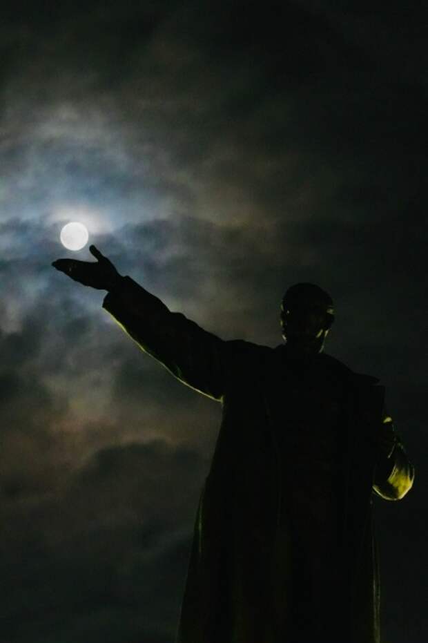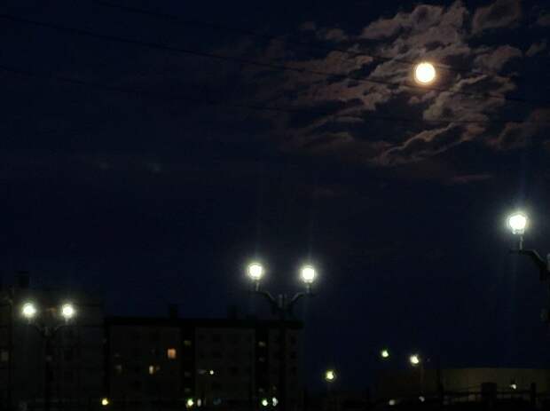 С необычного ракурса снял Бобровую Луну житель Подмосковья. Городской ландшафт гармонично дополнил картину.