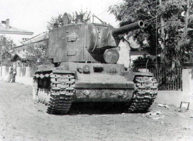 Советский танк КВ-2, брошенный на улице Львовской города Золочев в результате неисправности. Машина из состава 8-й танковой дивизии 4-го механизированного корпуса