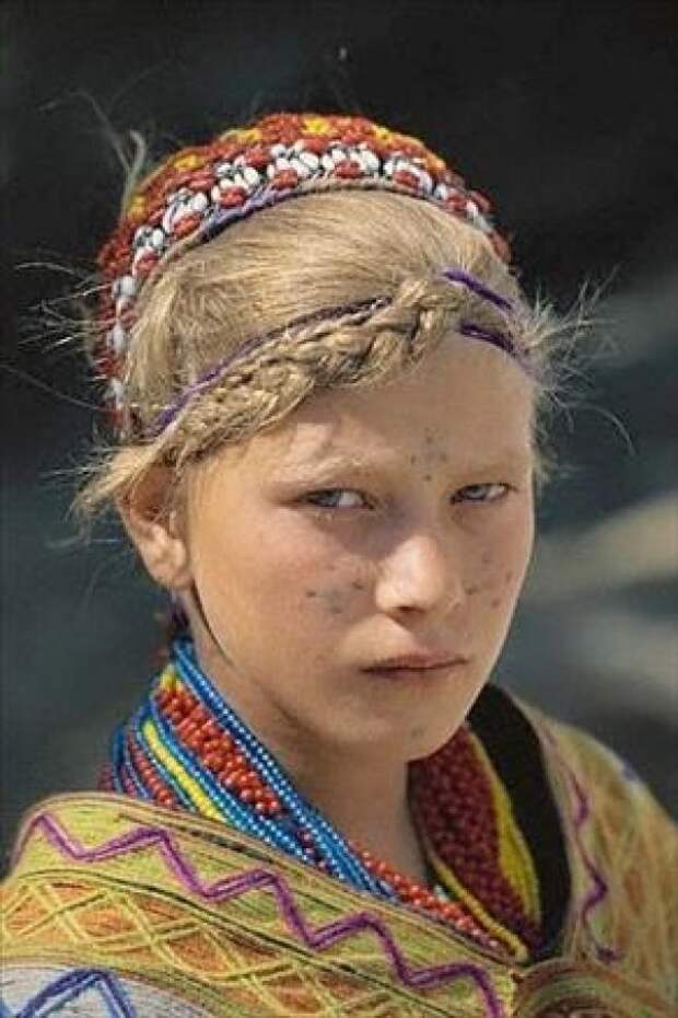 Калаши (самоназвание: kasivo; название «Калаш» происходит от названия местности) — народность вПакистане, проживающая в высокогорных районах Гиндукуша (Нуристан или Кафирстан). Численность - около 6 тыс. чел. Были почти полностью истреблены в результате мусульманского геноцида к началу XX века, так как исповедуют язычество. Ведут замкнутый образ жизни. Говорят на калашском языке дардской группы индоевропейских языков (однако около половины слов их языка не имеет аналогов в других дардских языках, как и в языках соседних народов). В Пакистане распространено убеждение, что калаши являются потомками воинов Александра Македонского (в связи с чем правительство Македонии построило средоточие культуры в этой области. Внешность некоторых калашей характерна для североевропейских народов,среди них часто встречается голубоглазость и блондинизм. При этом часть калашей имеют и вполне характерную для региона азиатскую внешность.