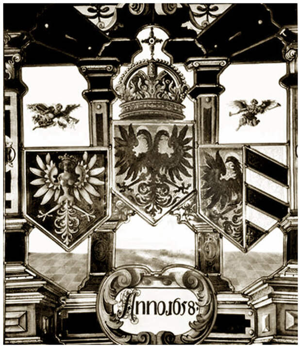 А вот герб славного немецкого города Нюрнберг (НР Н БРГ - НоРы На БеРеГу - гнёзда стрижей? Там течёт река Пегниц, "Пег" с немецкого - колышек. На песчаных обрывистых берегах стрижи устраивают гнёзда, выкапывая норки, очень похожие на следы от воткнутых колышков.) Почему я опираюсь на русский язык? Так вы же читаете сейчас этот текст, значит глаза исправны. Посмотрите в центр герба? Воот! Нюрнберг в 658 году входил в состав Российской империи, чтоб вы знали. Так что нам нет необходимости сочинять кто старше. Документы свидетельствуют о том, что ещё в в седьмом, по официальной хронологии - в семнадцатом веке Германия была частью России, поэтому цари Романовы не были иностранцами, они наши, родные. Поняли теперь как важно знать историю? Это же в корне меняет ситуацию, и переворачивает наше отношение к самим себе и нашим предкам. Если понимать, что иностранцы нами не правили никогда, то не будет даже попытки оправдать нынешнее засилие агентов империализма во власти и СМИ.