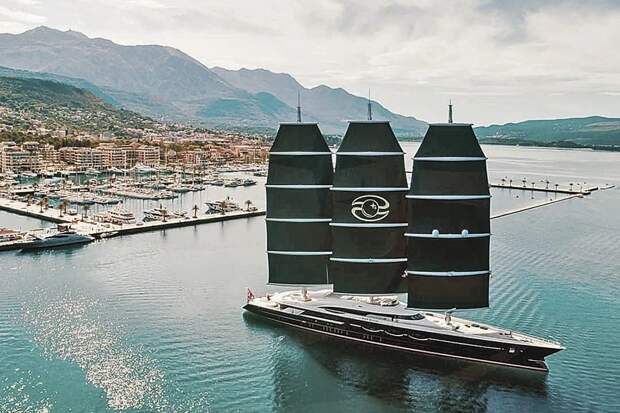 единственное судно в мире, способное накапливать энергию из альтернативных источников - солнца, ветра и воды. В огромные черные паруса площадью 2900 кв. м встроены гибкие жидкокристаллические солнечные батареи, которые собирают солнечную энергию.