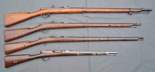 На вооружении российской императорской армии в годы правления императора Александра III находилась винтовка Бердана №2 — однозарядная винтовка калибра 10,67 мм, созданная американским инженером и изобретателем Хайремом Берданом в 1868 году. На вооружении с 1870 года, когда ей заменили винтовку Крнка, и вплоть до 1891 года, когда ее заменила винтовка Мосина. Вверху пехотная винтовка Бердана, вторая сверху – драгунская, третья сверху – казачья, самая нижняя – карабин. Фотография А. Добресса