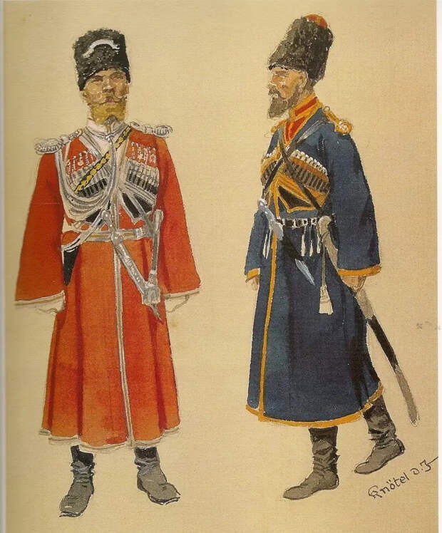 Кубанские и терские казаки Его Величества императорского конвоя. Работа художника Г. Кнетеля (1893-1963)-немецкого художника и историка-униформиста