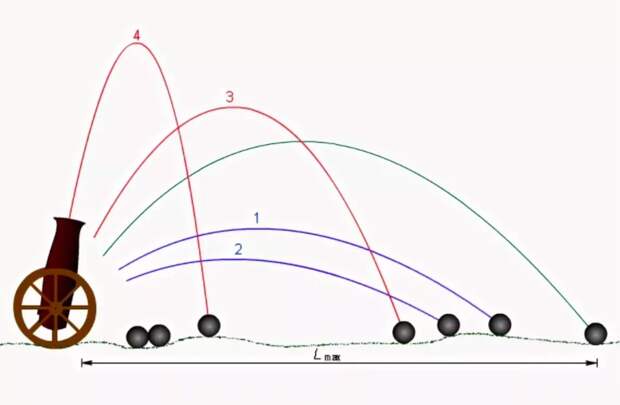 Артиллеристы всех стран долгое время пребывали в заблуждении, считая: дальнобойность зависит от начальной скорости снаряда, потому стволы дальнобойных пушек постоянно удлиняли, пороховой заряд увеличивали. Бесполезно. По настильной траектории что-то выходило (кулеврины и пищали), но вот с баллистикой творилась полная чертовщина.