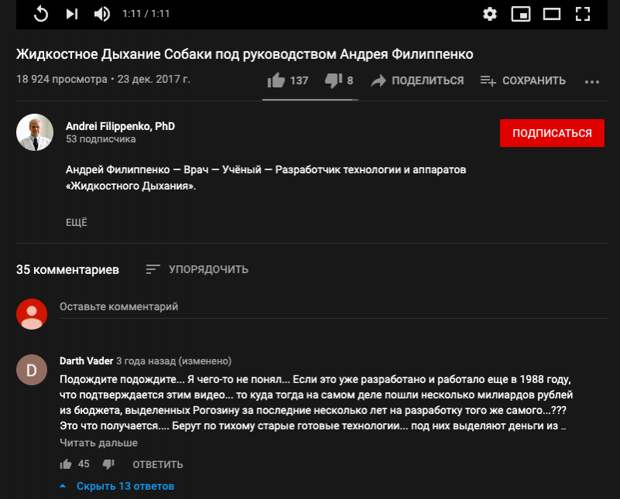 В комментариях к видео один из зрителей задал вполне логичный вопрос (внизу скриншота).