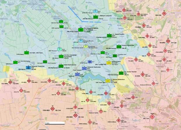 По некоторым косвенным признакам можно сделать осторожный вывод, что активность в районе Константиновки с российской стороны существенно возросла и дело постепенно переход в перемалывание резервов ВСУ с целью дальнейшей изоляции всего района. Такая конфигурация выглядит как реализация сразу двух задач: во-первых, усиление давления на украинскую оборону по всей линии, чтобы у командования ВСУ не было возможности маневрировать резервами, во-вторых, создание эффекта «расшатывания» фронта на нескольких участках сразу. И в первом, и во втором случае торопиться российским войскам нецелесообразно по нескольким причинам.