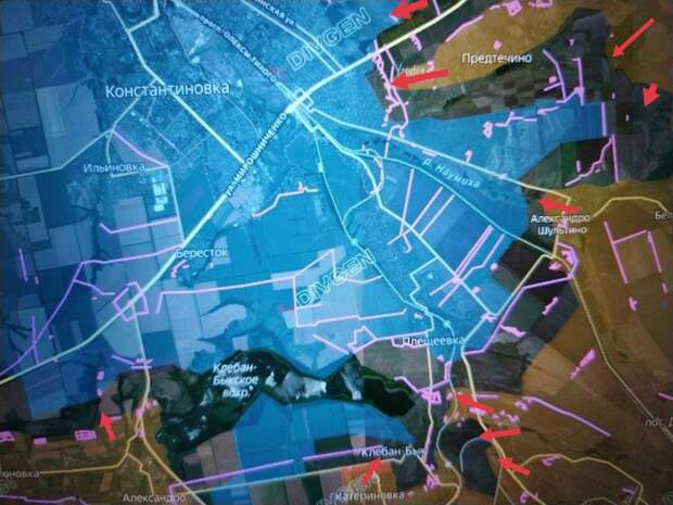 Клебан-Бык – посёлок в Константиновском районе бывшей Донецкой области с довоенным населением около 460 человек. Расположен на берегу Клебан-Быкского водохранилища в 9 километрах к югу от Константиновки. По линии Клебан-Бык – Александро-Калиново проходит горловина котла, в который угодила крупная группировка ВСУ. В настоящий момент её уничтожают. Кроме того, Клебан-Бык расположен на возвышенности, что позволяет нашим операторам дронов держать под огневым контролем практически всю Константиновку, пишет военкор Александр Коц.