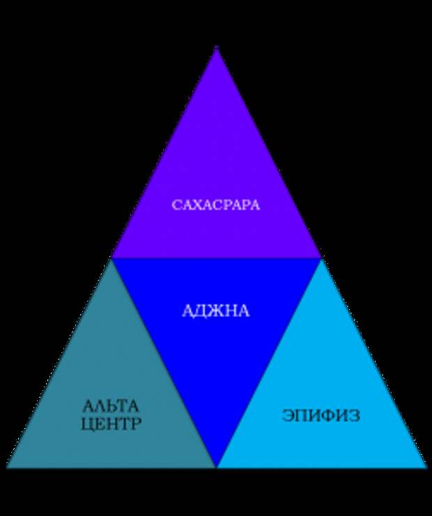 Так подготавливается работа для выстраивания Антахкараны – треугольника внутри головы, задействующего центры развития, включающие межбровный аджна центр, затылочный альта центр, шишковидную железу и коронную чакру Сахасрара.