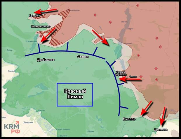 Враг признаёт: положение ВСУ у Красного Лимана близко к критическому. Deepstate уже вынужден отмечать полуокружение Шандриголового, а на их картах закраска становится шире с каждым днём. Весь внешний пояс обороны трещит – Дробышево, Ставки, Торское, Заречное, Ямполь. Дробышево для противника – последняя дорога в тыл. Потеряют её и останутся только переправы и дроны. Этого мало, чтобы удержать город.