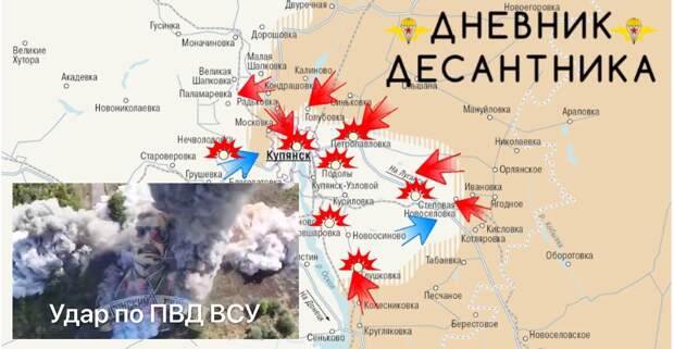 Активные боевые действия ведутся в северо-западных районах Купянска. Параллельно ВС РФ ведут наступление на Петропавловку и Степовую Новосёловку и в районе между ними. Наши войска продолжают ожесточённые бои за освобождение территорий, продвигаются и закрепляются на значимых участках. В северо-западной части Купянска наши войска продвигаются в жилой застройке, идут сложные бои, позиции наши и противника вперемешку, что осложняет обстановку. Продвижение есть, но постепенное и без резких изменений.